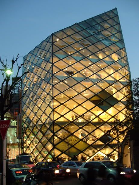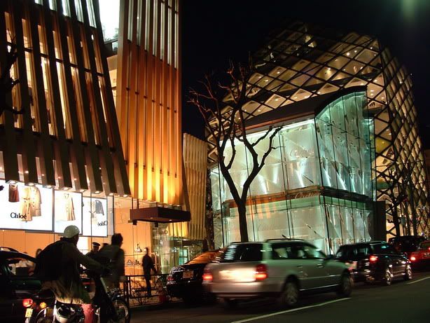 prada, etc. the prada building was quite spectacular. i felt kind of intimidated when i walked in there, especially after i got told to 'please don't touch that' when i was playing with a little book full of fabric samples. there was gloves made of black crocodile skin (A$2000 for the pair) and similarly outrageous stuff. looked funky though. oh, and on the way there, i finally got to see