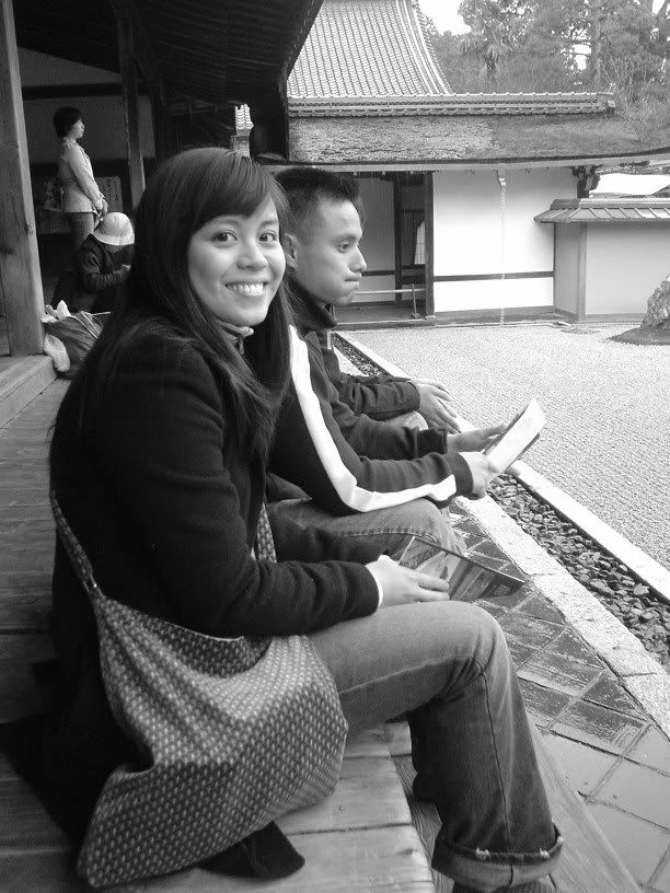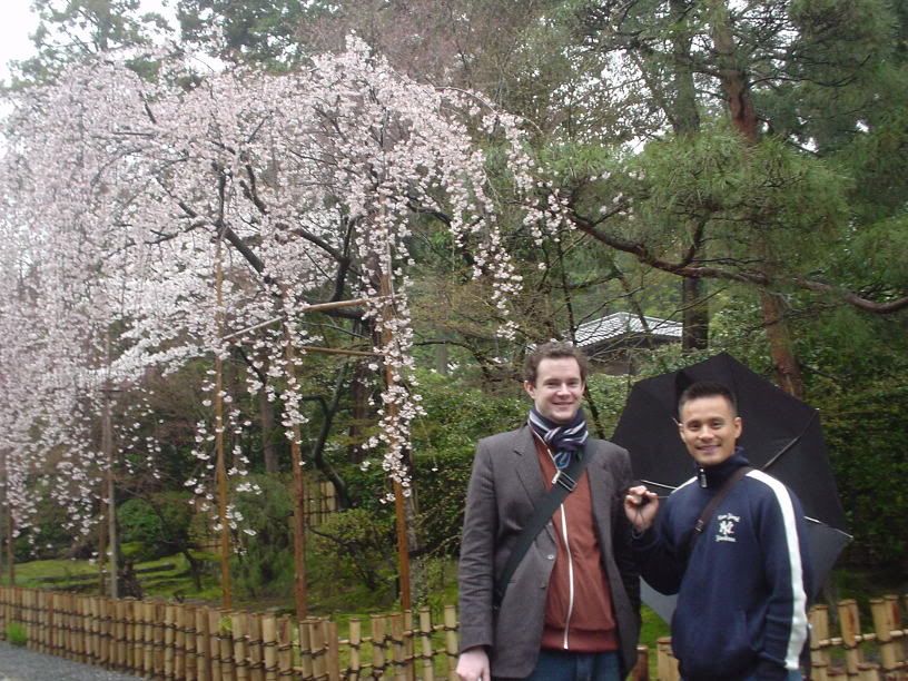 THE zen garden. it is famous for its 15 rocks that are surrounded by raked sand and only 14 can ever be seen at one time from any angle you look at them. what a mindbender in the 13the century. it was really quite beautiful and serene, the rain and medieval achiteture reminding me of that one fighting scene in 'hero', where they battle each other in the rain to the sounds of an ancient chinese zither. great stuff.