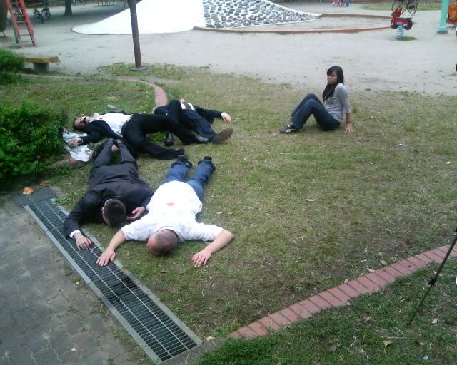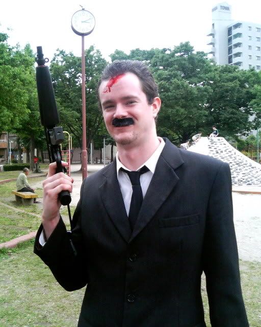 (the guy in the white shirt in the foreground) and then I get shot myself. Hollywood, here I come. It all ends in a massacre. It's a comedy about English teachers in Japan that get mixed up with some yakuza. Jolly good stuff.